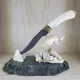 Представляем эксклюзивную настольную композицию “Касатка” – воплощение силы, мудрости и элегантности. Эта изысканная работа, выполненная из бивня моржа и бивня мамонта, станет неповторимым символом успеха и авторитета. Рукоять ножа украшена фианитами благородного фиолетового цвета, олицетворяющими мудрость, а клинок выкован из высококачественной дамасской стали с причудливым рискнком, что придает композиции особую выразительность.